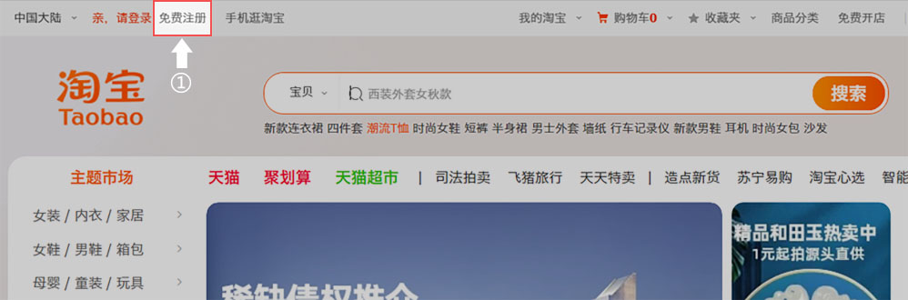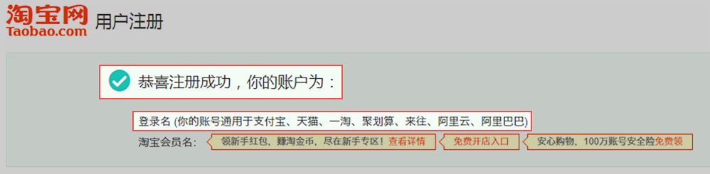 ①この画面が出たら登録完了です。あなたのアカウントはタオバオとアリババで通用します。